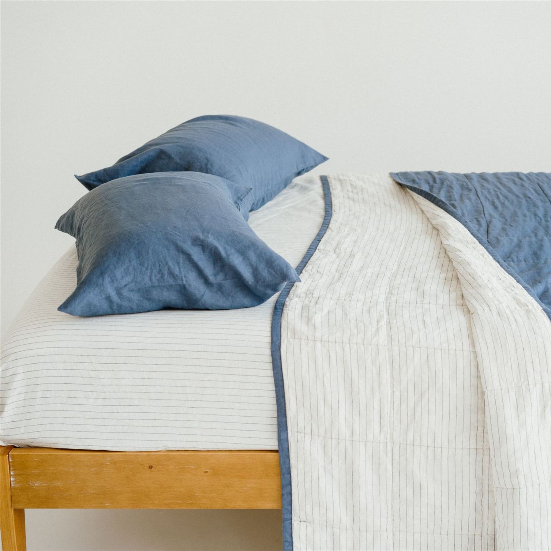 Our coveted quilts are crafted entirely in natural fibres. Soft layers of flax linen are filled with a breathable, cloud-like cotton inner, and best of all, they are machine washable.