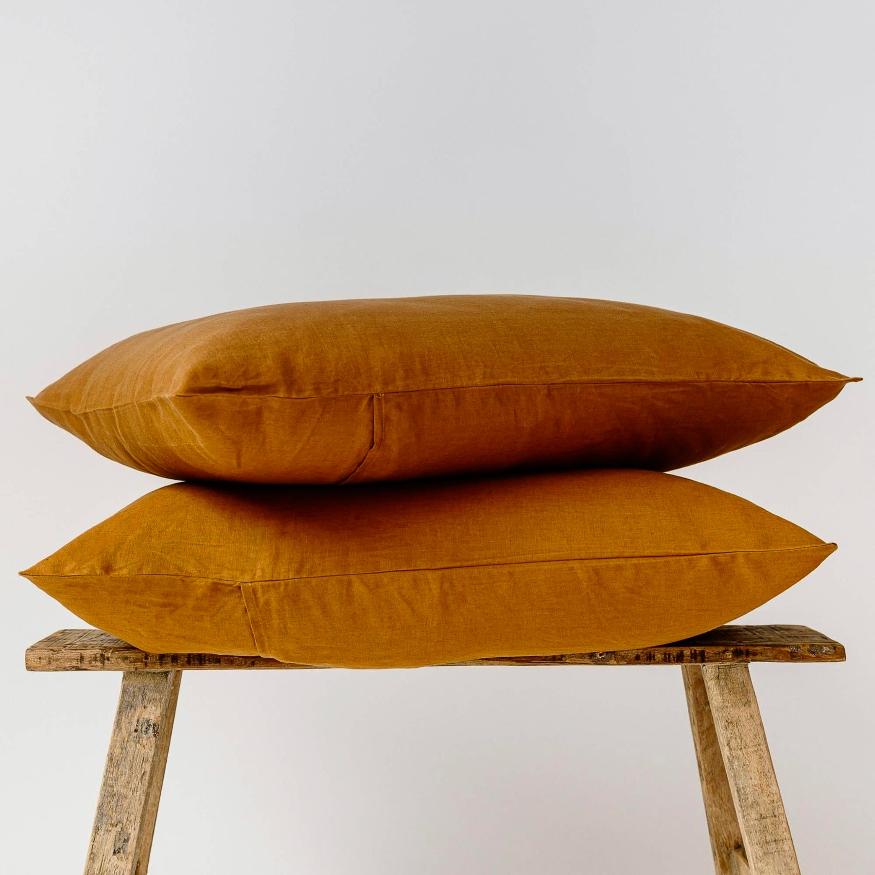 Sleep easy on luxurious, super soft French Flax Linen. Perfect for seasonal styling, rich Tobacco exudes warmth. Richly hued, it works beautifully as a bold pop of colour with Grey Stripes, Olive Green or our Natural colourway.