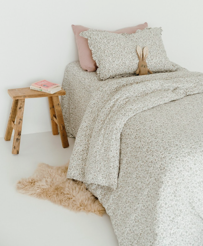 You’ll find Evelyn Floral across our baby and children’s range, plus all linen sheet sizes, quilts, pillowcases (including our first-ever ruffled cases!) and cushions.